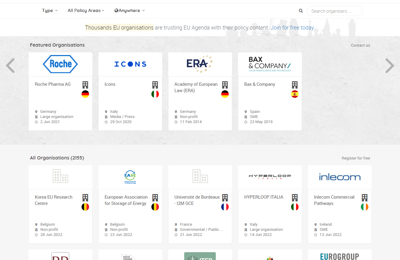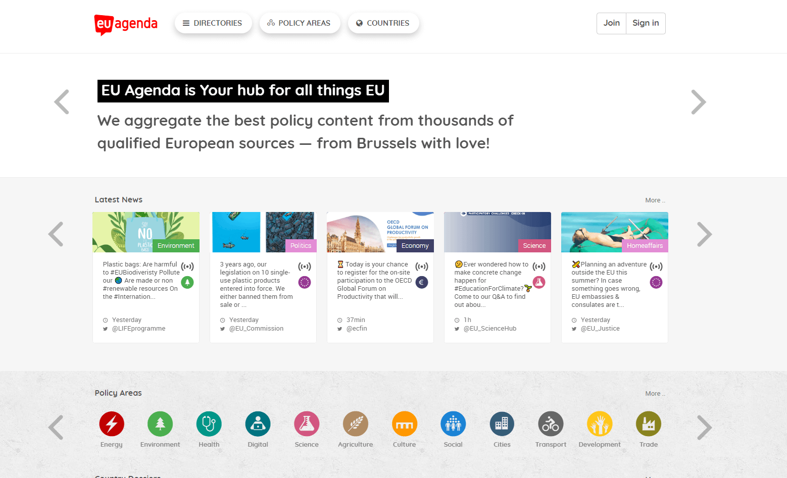 EUAgenda is a European Union policies aggregator. It aggregates events, publications, news, organisations, basically everything EU-related.