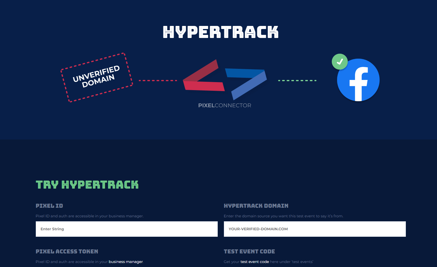 PixelConnector implements Facebook's Conversion API to let users track any number of domains and events without having to worry about the domain verification process.