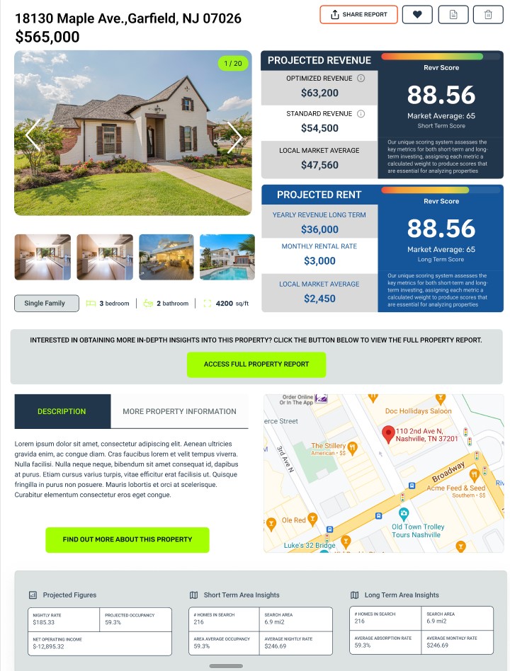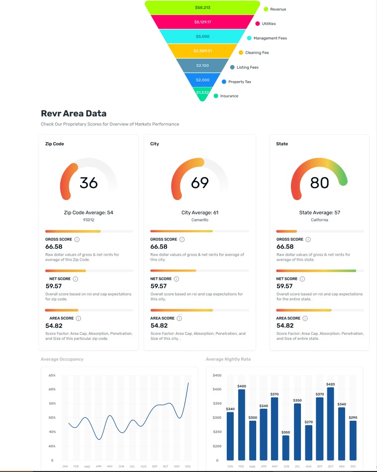 An innovative platform that provides users with up-to-date market listings, revenue projections, financial analysis, area insights, and market metrics - all updated on a daily basis. Whether you're looking to invest in short-term or long-term projects, REVR has the data and insights you need to make the best decisions for your portfolio.