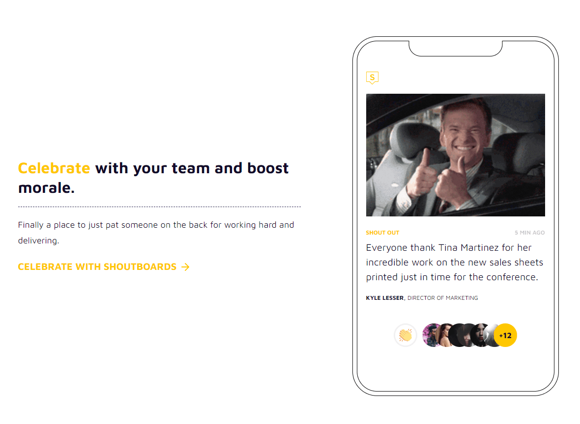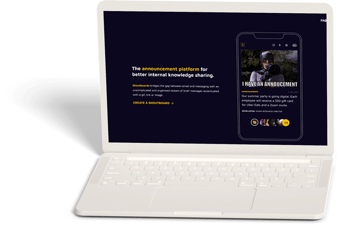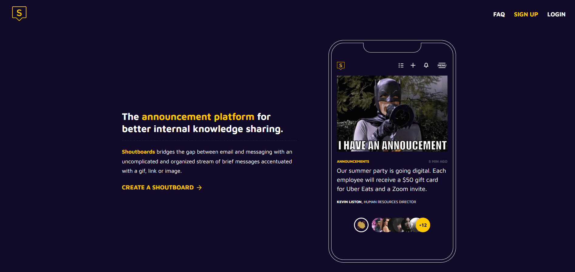 Shoutboards is an announcement platform for companies to post announcements in a playful way and to celebrate achievements.